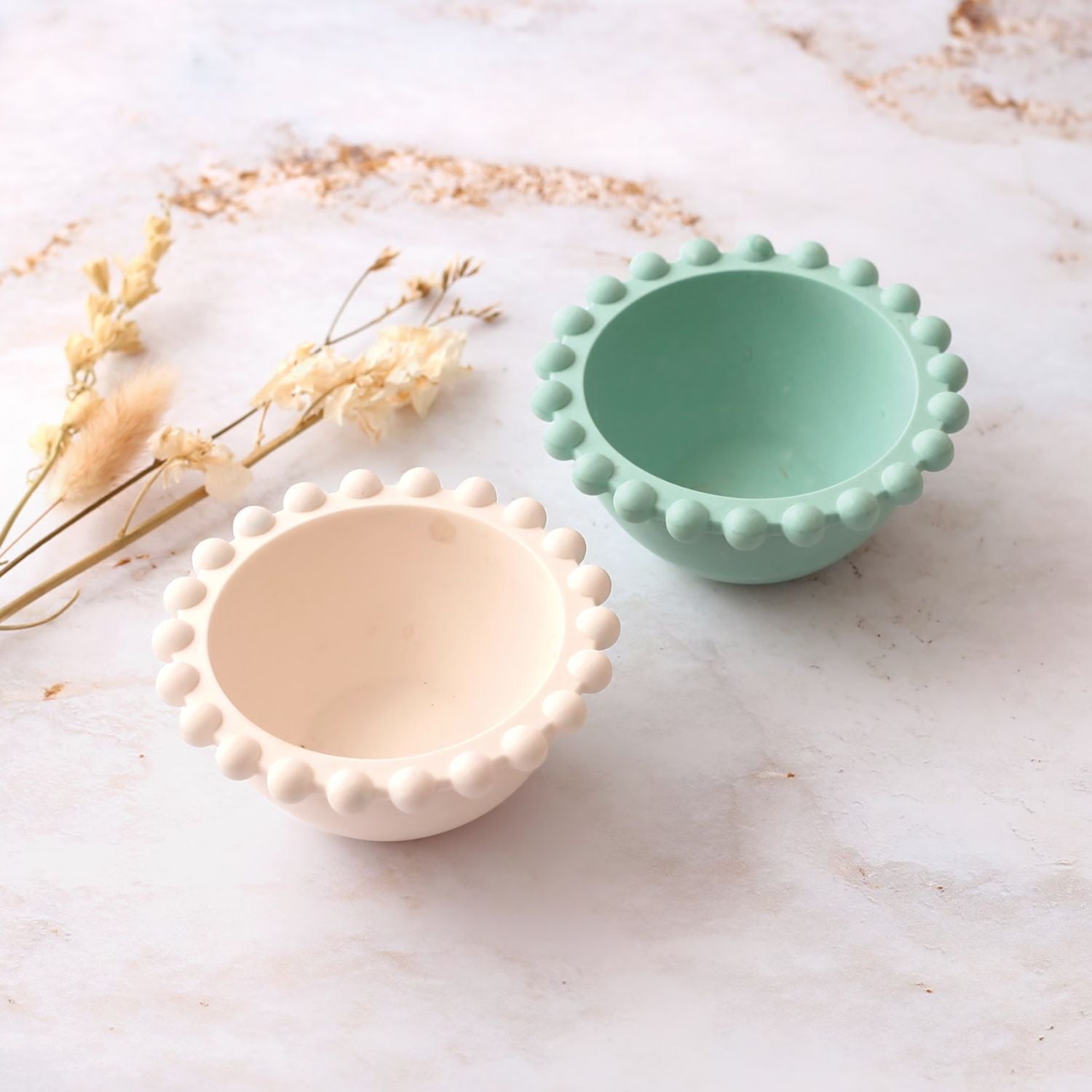 Gerade wenn du Jesmonite in hellen Farben giessst, sind Fussel und kleine Partikel im Endergebnis gut sichtbar, weil Jesmonite extrem fein Details und Schmutz überträgt. Deshalb reinige deine Silikonformen nach jedem Gebrauch sorgfältig mit milder Seife und Wasser, trockne sie komplett und entferne wirklich alle Fussel mit einem fusselfreien Tuch oder Klebeband (z. B. Malerkrepp), bevor du giessst.