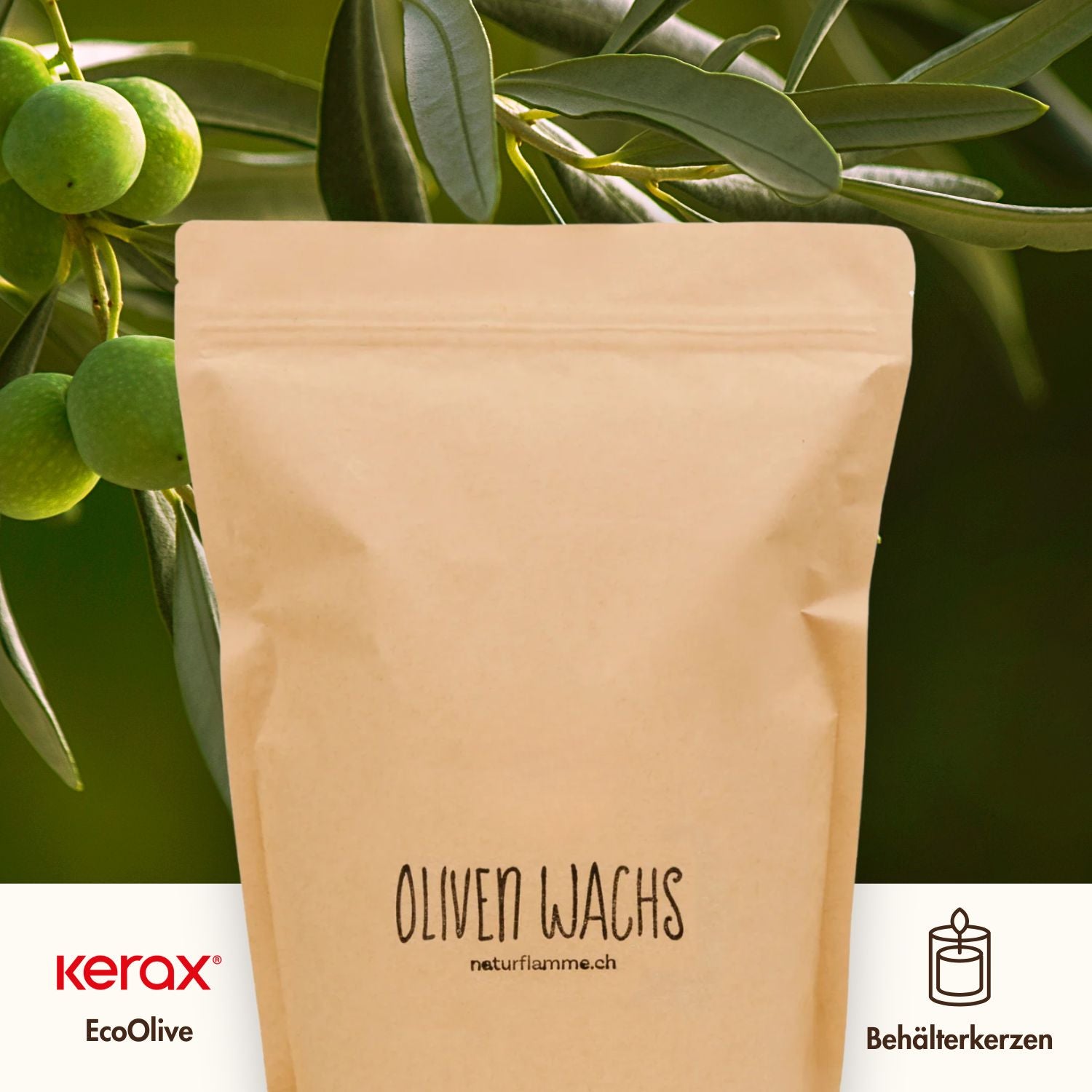 Olivenwachs Pastillen «EcoOlive Container» für Behälterkerzen